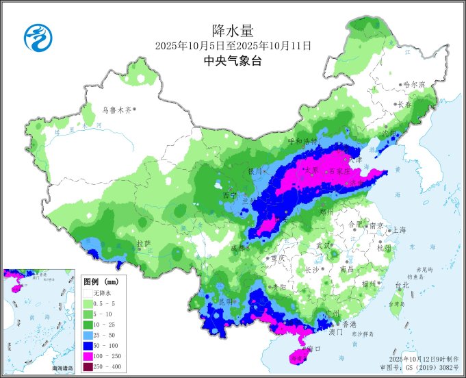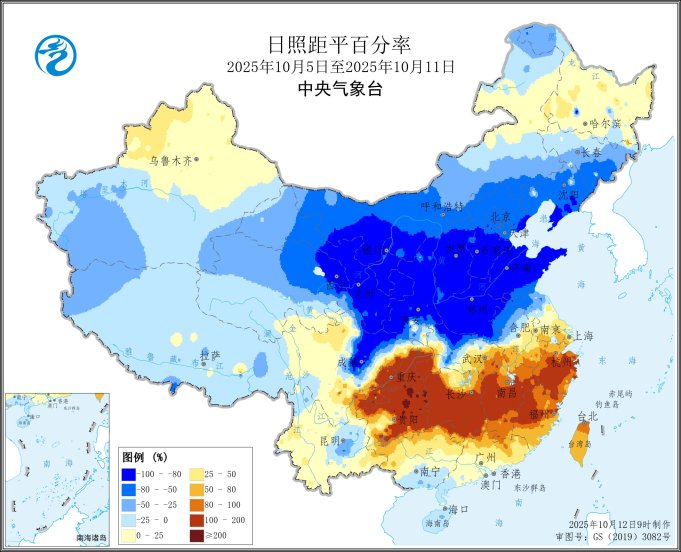 本周(2025年10月5日-10月11日),全國農區氣溫呈北方偏低、長江中下游異常偏高的特點,其中黑龍江大部、新疆大部、甘肅東部、寧夏西部、河北中南、河南北部、山東西部等地偏低1~4℃,安徽南部、江蘇南部、湖北西南部和東部、浙江、江西、湖南、福建北部、重慶、貴州北部等地偏高6℃以上(圖1)。全國農區降水主要集中在華北、黃淮、西北地區東部、華南西南部及云南、四川盆地等地,其中河北、山西、陜西、山東大部、甘肅東部、四川東北部、貴州西南部、云南南部、廣西南部和西部、廣東西南部、海南等地降水量有50~250毫米(圖2),河北南部、山西中部、山東北部、陜西中北部和西部、甘肅東部等地降水日數有7天,上述大部地區降水量較常年同期偏多2~4倍,其余農區降水量不足25毫米或無有效降水。全國日照北少南多,內蒙古中西部、東北地區南部、華北、黃淮、江漢北部、西北地區中東部及四川東北部等地偏少5~9成;江南大部、華南北部、西南地區東部等地日照時數偏多5成至2倍(圖3)。