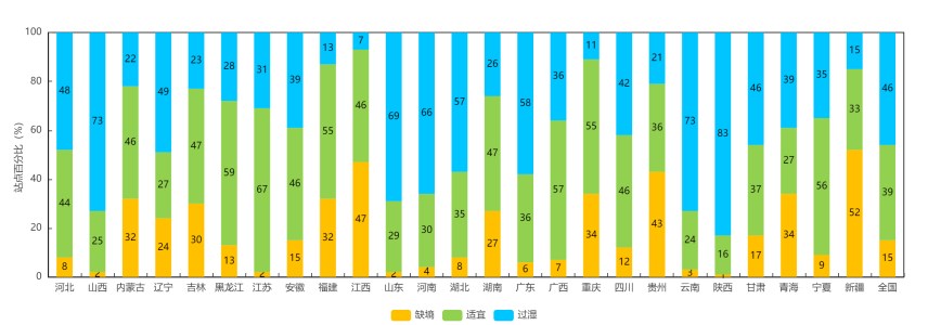 附圖2 10月12日分省20厘米土壤墑情統計(站點百分比)
